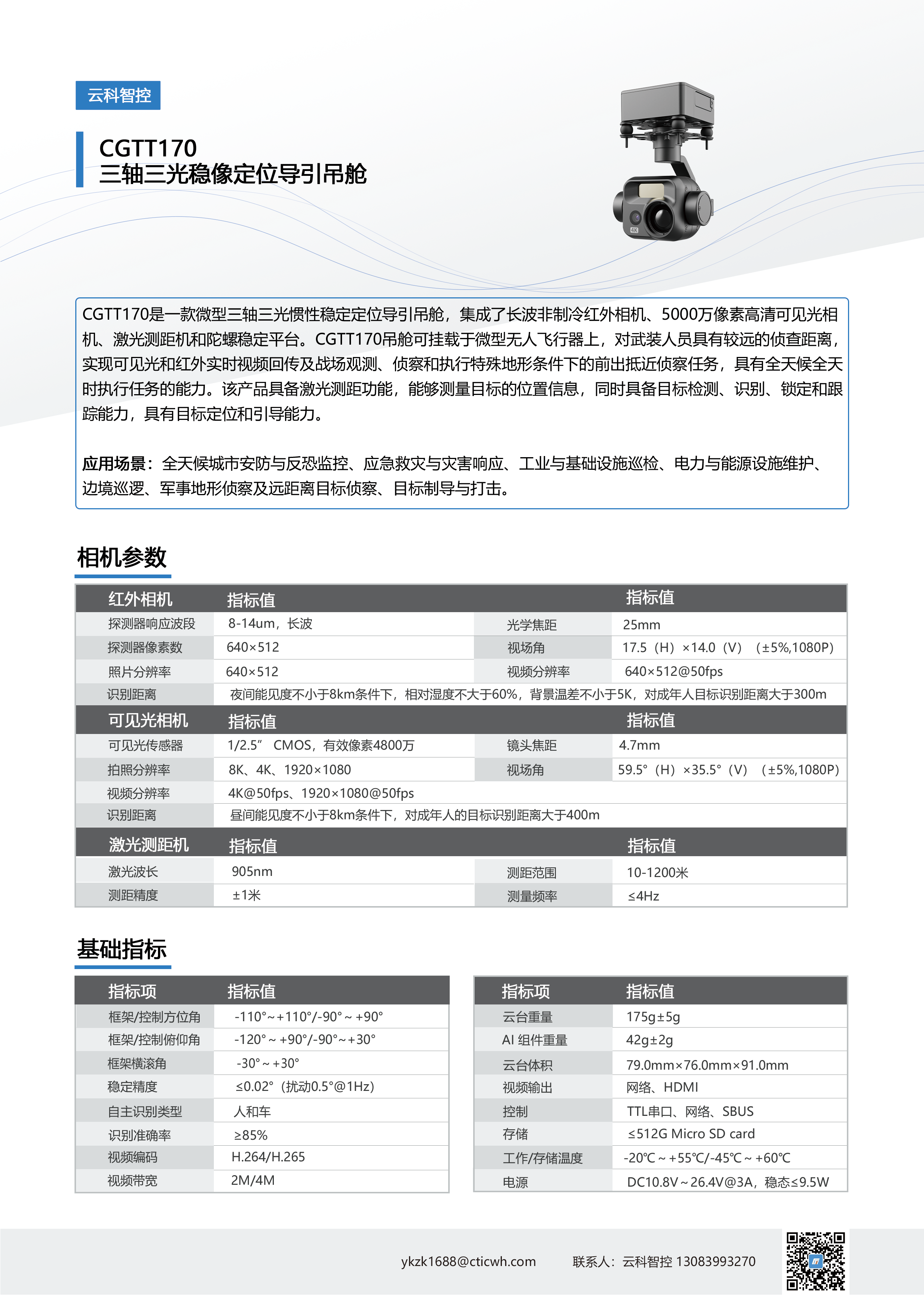 全天候城市安防与反恐监控、应急救灾与灾害响应、工业与基础设施巡检、电力与能源设施维护边境、巡逻、军事地形侦察及远距离目标侦察、目标制导与打击。